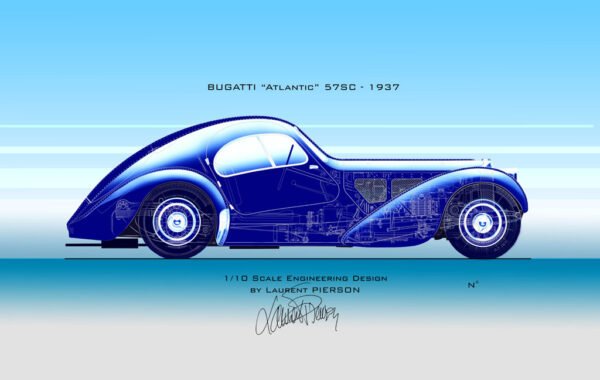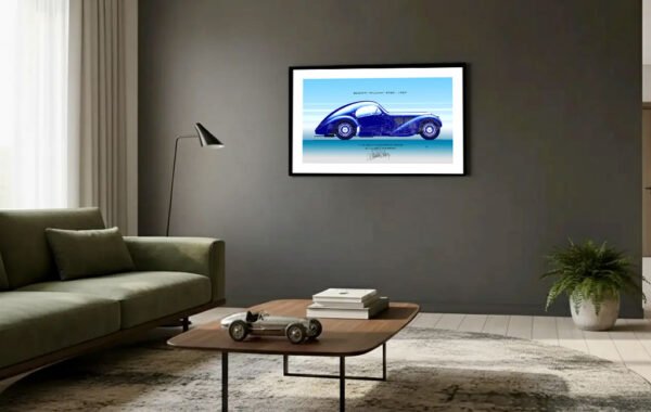 L’authenticité des détails techniques et l’élégance des courbes font de ce tirage d’art une véritable invitation au voyage dans l’histoire de l’automobile.